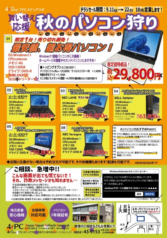 ☆秋のパソコンセールのお知らせ☆